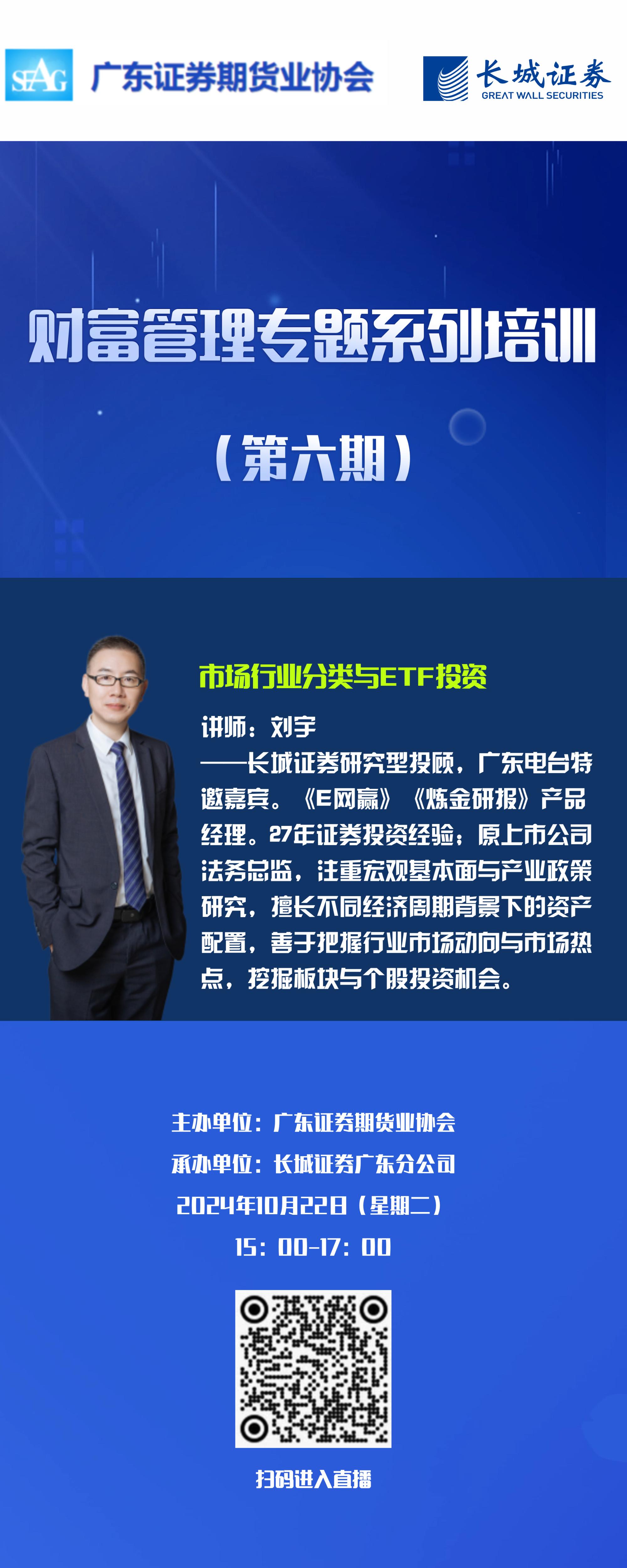 10月22日下午,我会联合长城证券股份有限公司(简称“长城证券”)广东分公司举办了第六期财富管理专题系列培训。本次培训邀请了长城证券投资顾问刘宇担任讲师,我会秘书长陈庆主持培训并讲话。本次培训以网络形式开展,辖区会员单位从业人员在线观看,浏览量达1824人次。