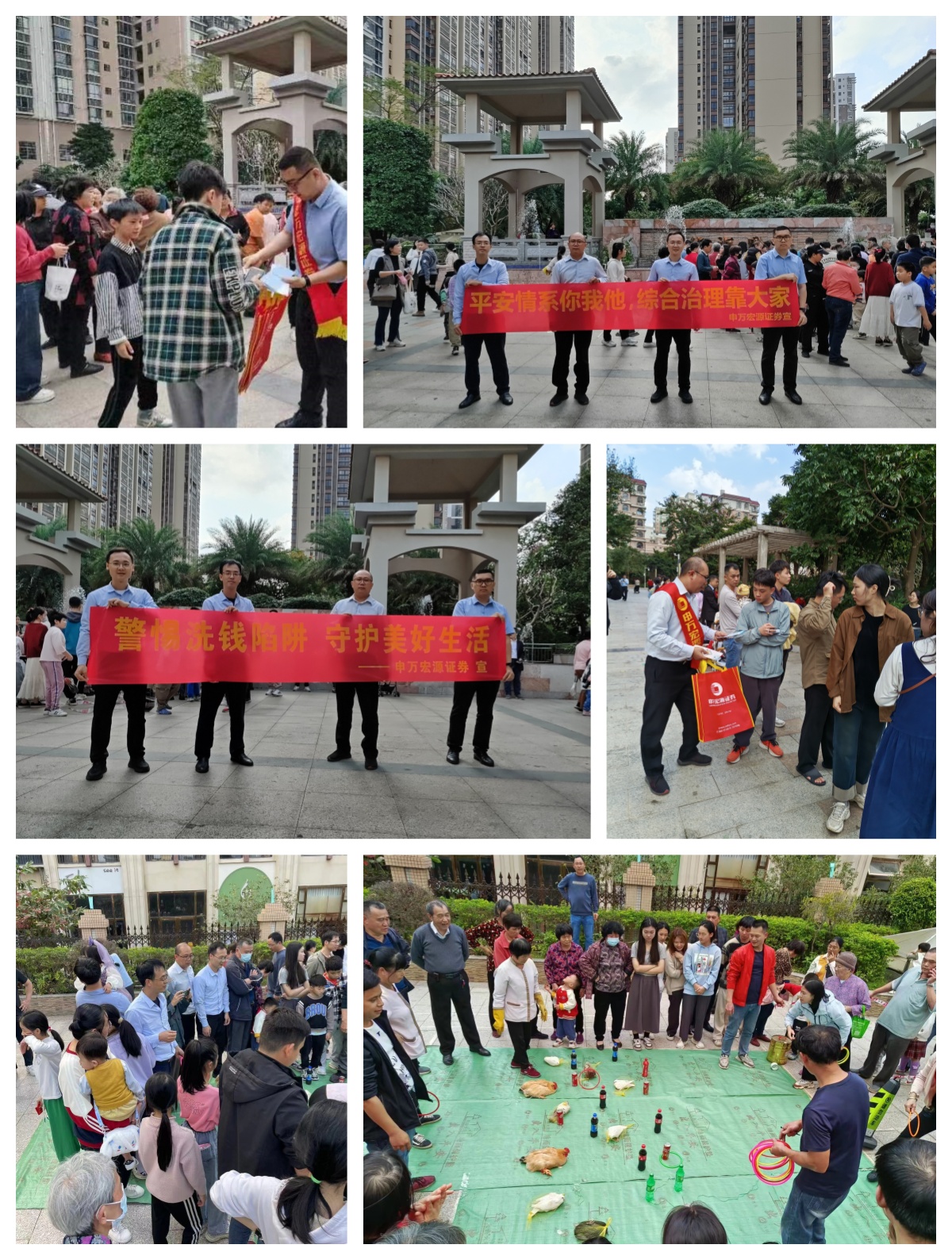 随着春节的临近,为营造浓厚的节日氛围,提升小区居民对于反洗钱和投资者教育相关知识的认识,申万宏源证券茂名迎宾三路营业部携手华海雅居小区物业管理公司,协助其于2024年2月3日在小区社区成功举办了一场别开生面的“春节游园活动”。
