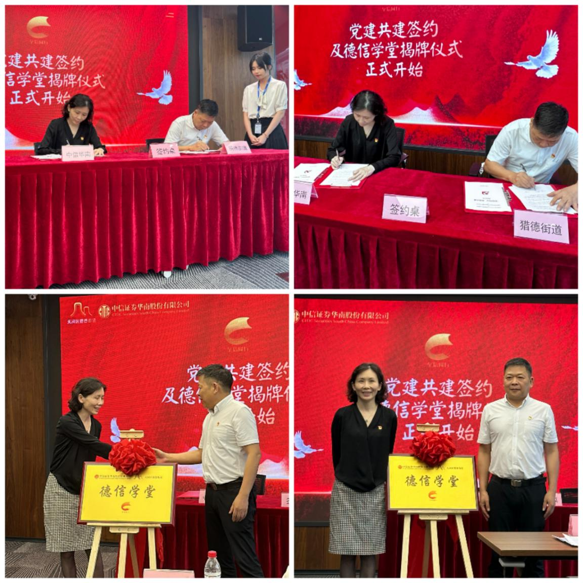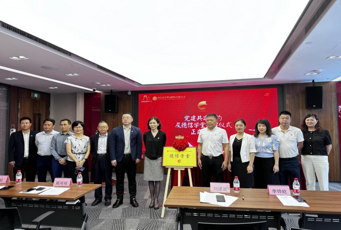 为全面贯彻党的二十大精神以及全国两会精神,深入贯彻习近平总书记对广东系列重要讲话和重要指示批示精神,紧紧围绕把握新发展阶段、贯彻新发展理念、服务构建新发展格局,2023年6月30日,中信证券华南股份有限公司党委与天河区猎德街道党工委举办了党建共建签约及“德信学堂”揭牌仪式。中信证券华南股份有限公司党委书记、董事长、总经理陈可可,广州市天河区猎德街道党工委副书记、街道办事处主任刘建波,广州市天河区猎德街党工委副书记李铧屹,中信证券华南股份有限公司党委委员、副总经理王毅,双方党务工作相关负责人、党员骨干等40余人参加了此次活动。
