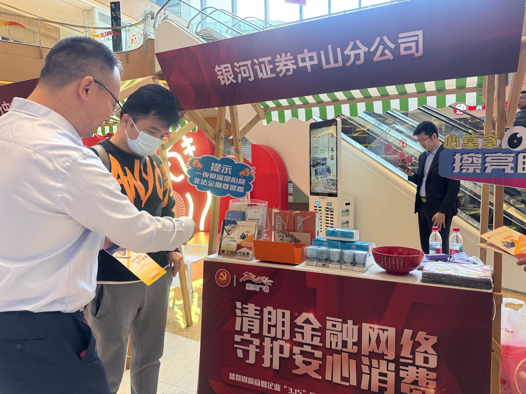 为全面贯彻落实党的二十大和二十届历次全会精神,落实中央经济工作会议、中央金融工作会议等部署要求,践行以投资者为本的理念,扎实做好投资者教育宣传工作,在 3・15 国际消费者权益日期间,银河证券中山分公司联合盛景尚峰商圈党委、紫马广场等单位,共同开展以 “清朗金融网络,守护安心投资” 为主题的 2026 年 3・15 投资者保护教育宣传专项活动,以趣味互动 + 专业科普的形式,为市民送上一堂生动的金融安全课。