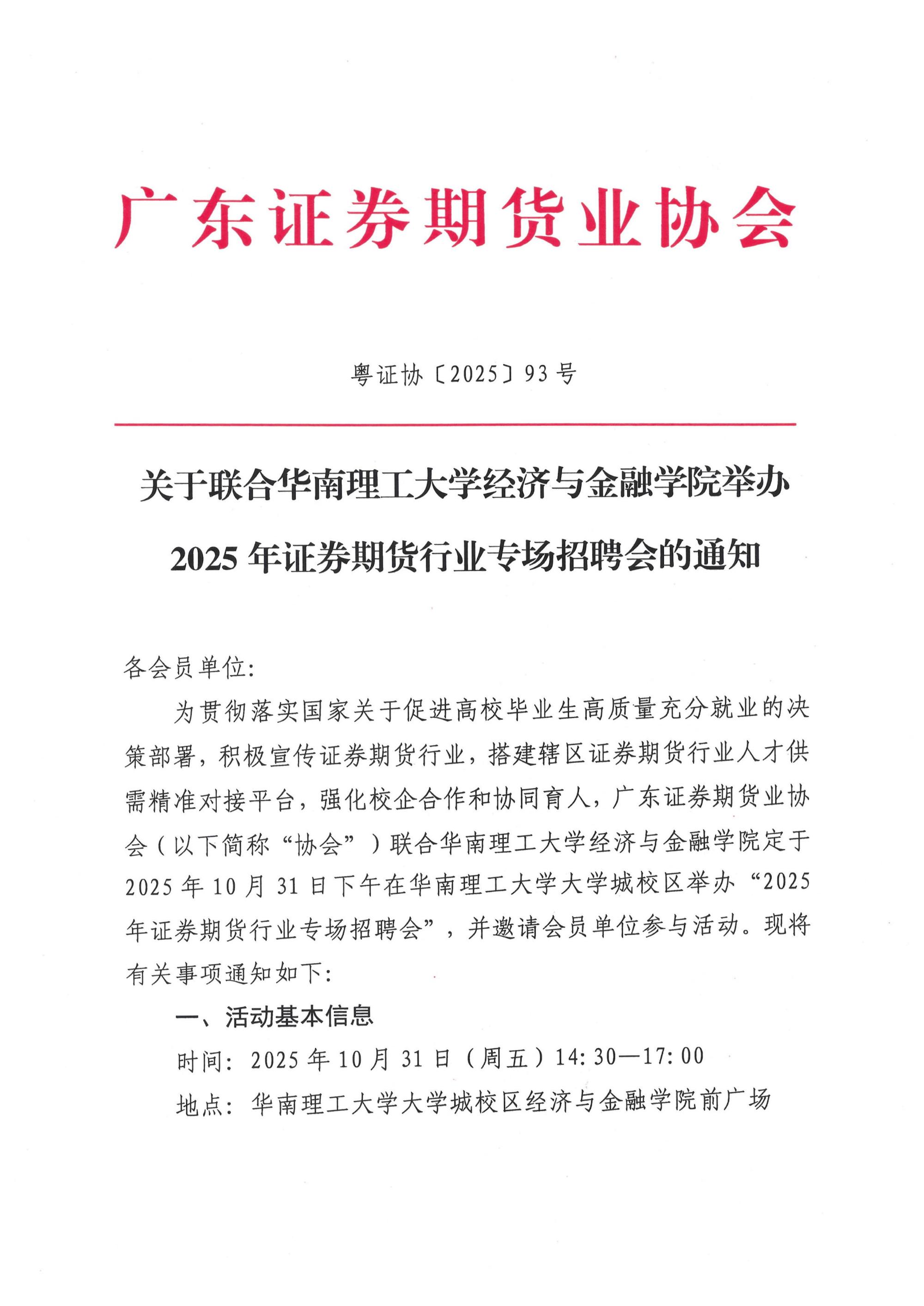 粤证协2025-93关于联合华南理工大学经济与金融学院举办2025年证券期货行业专场招聘会的通知.pdf