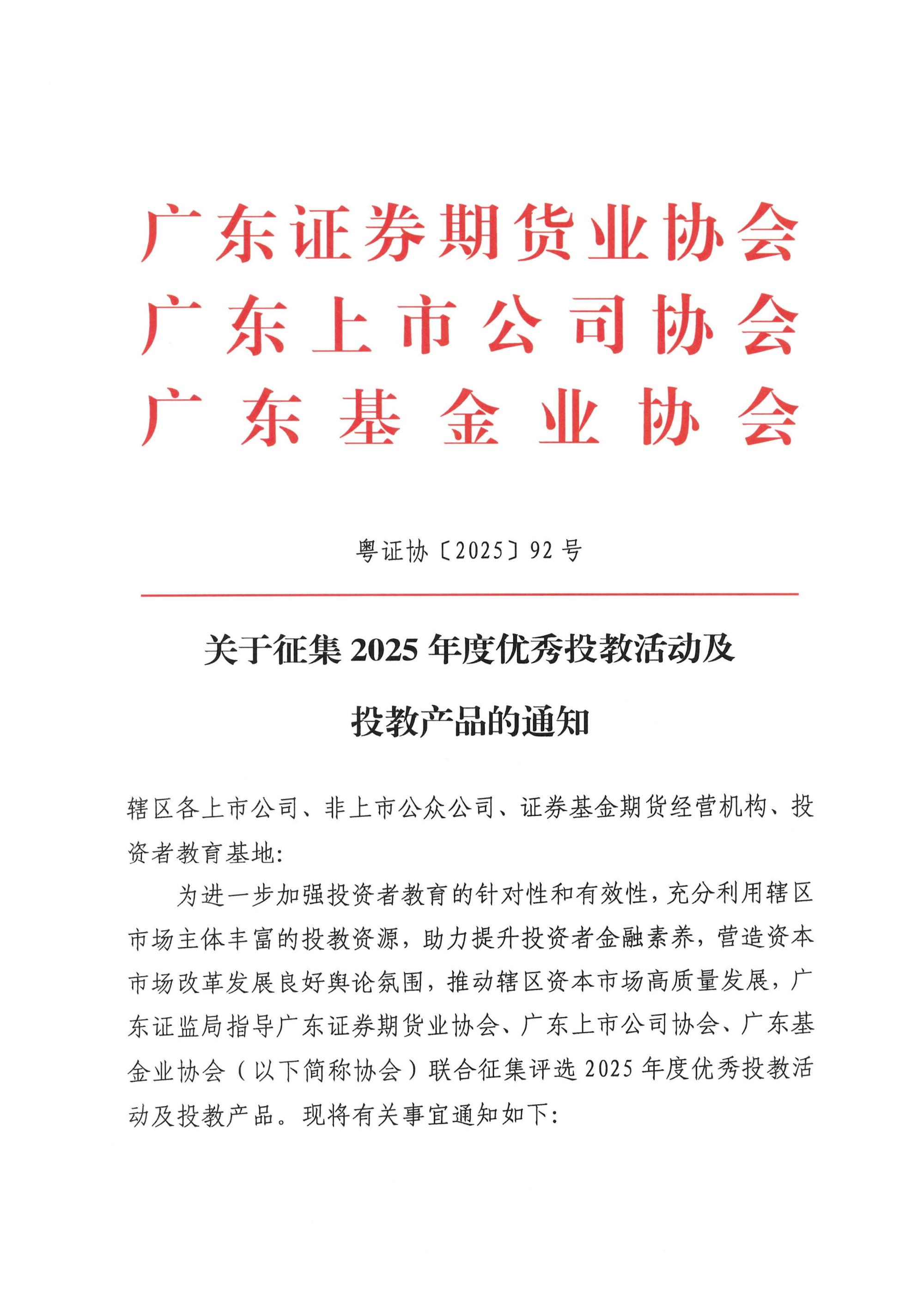 粤证协2025-92号关于征集2025年度优秀投教活动及投教产品的通知.pdf