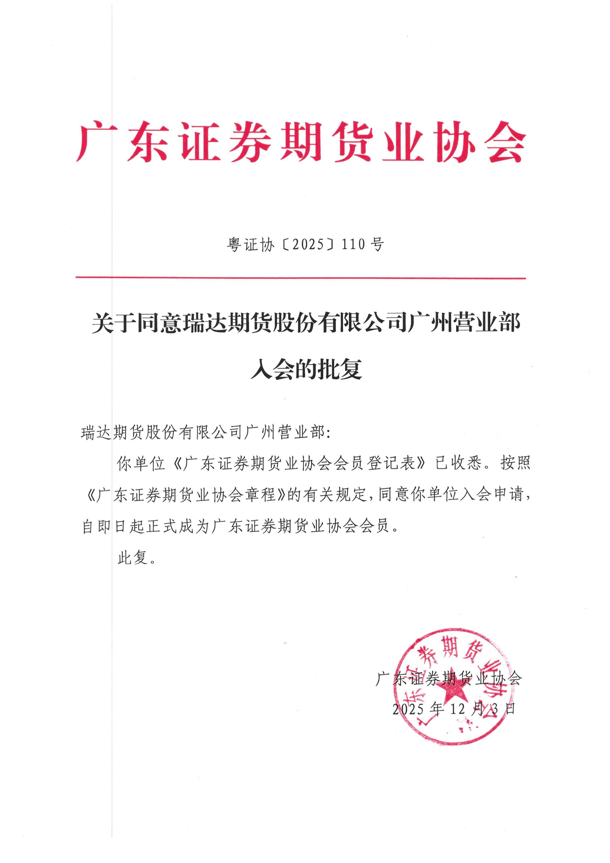 关于同意瑞达期货股份有限公司广州营业部入会的批复