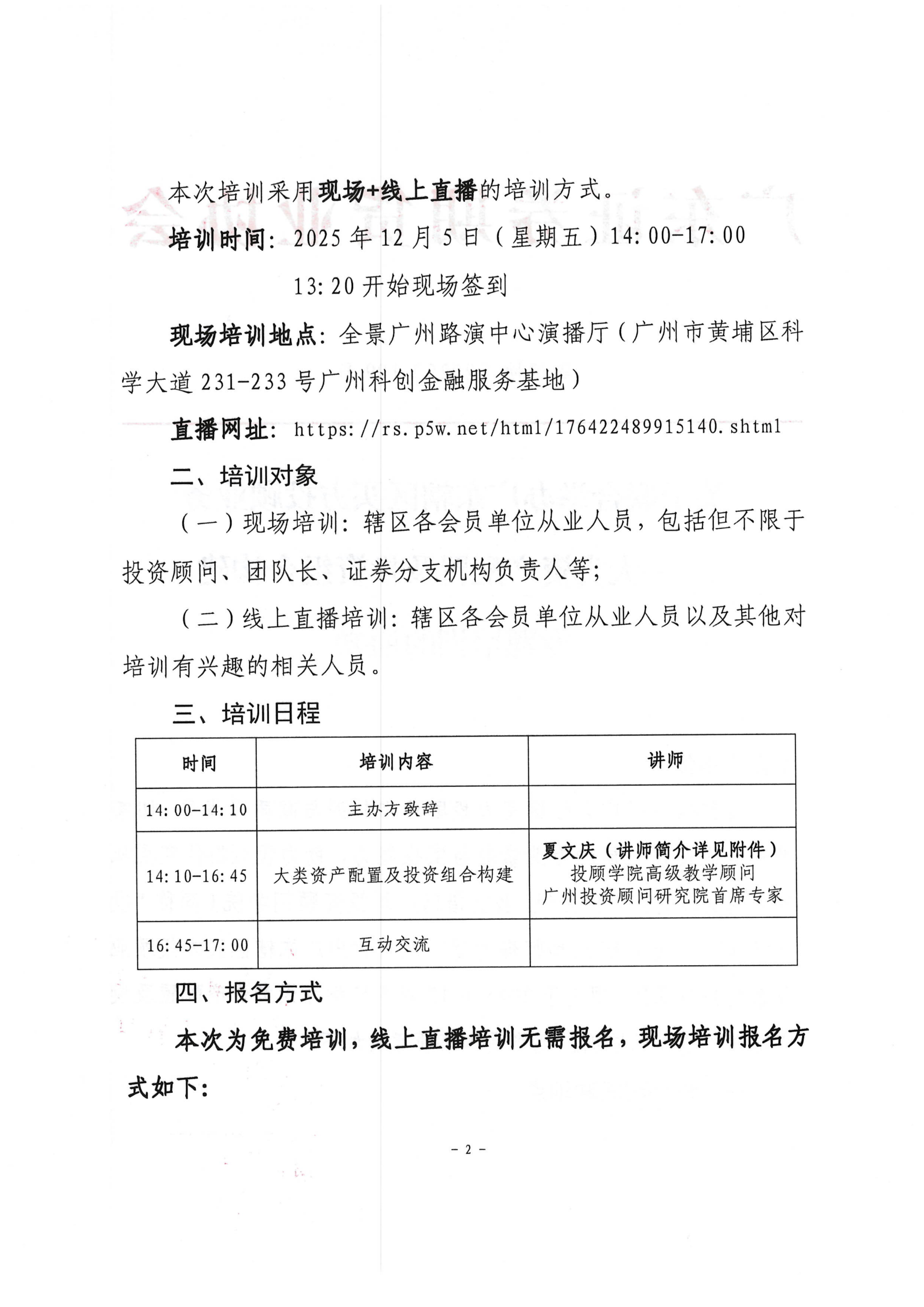 关于联合举办广东辖区买方投顾业务——大类资产配置及投资组合构建专题培训的通知