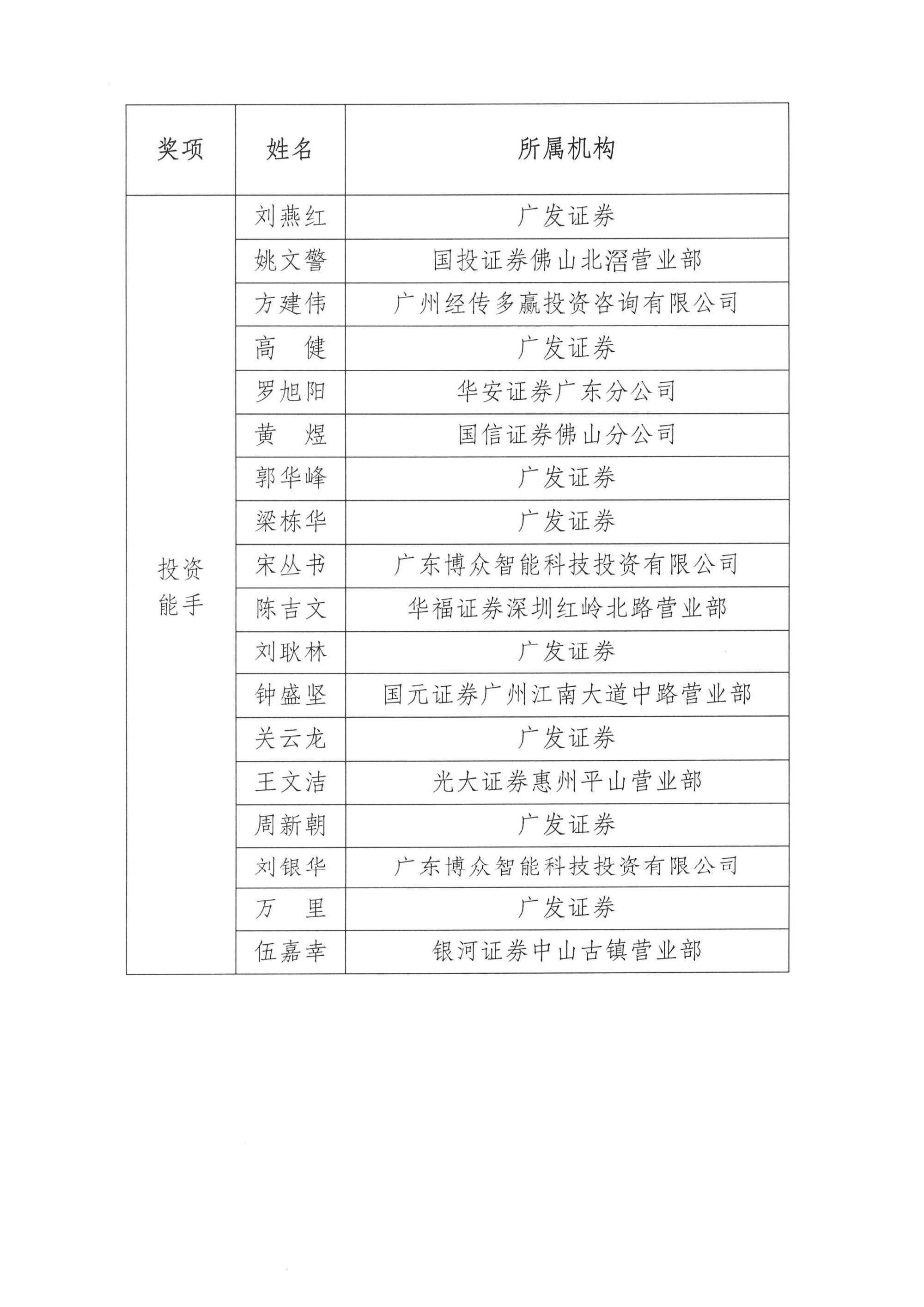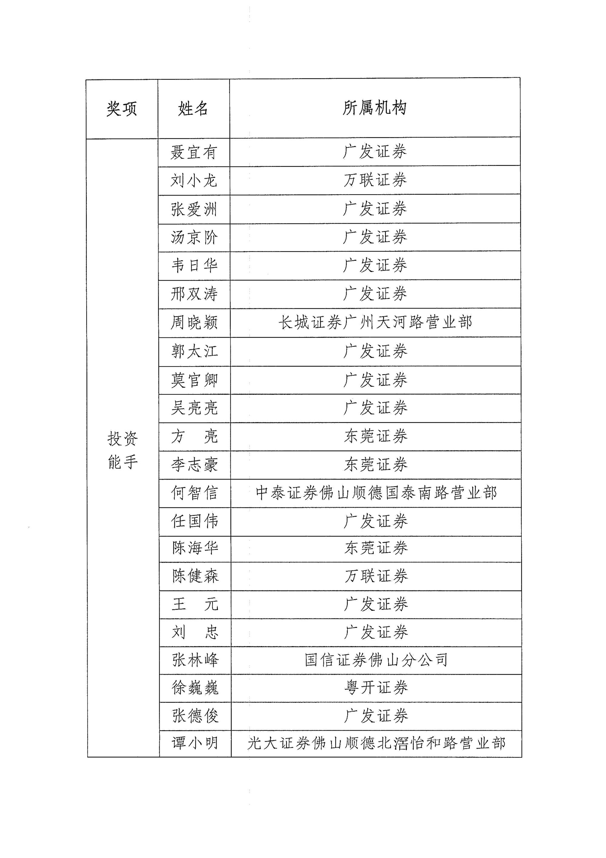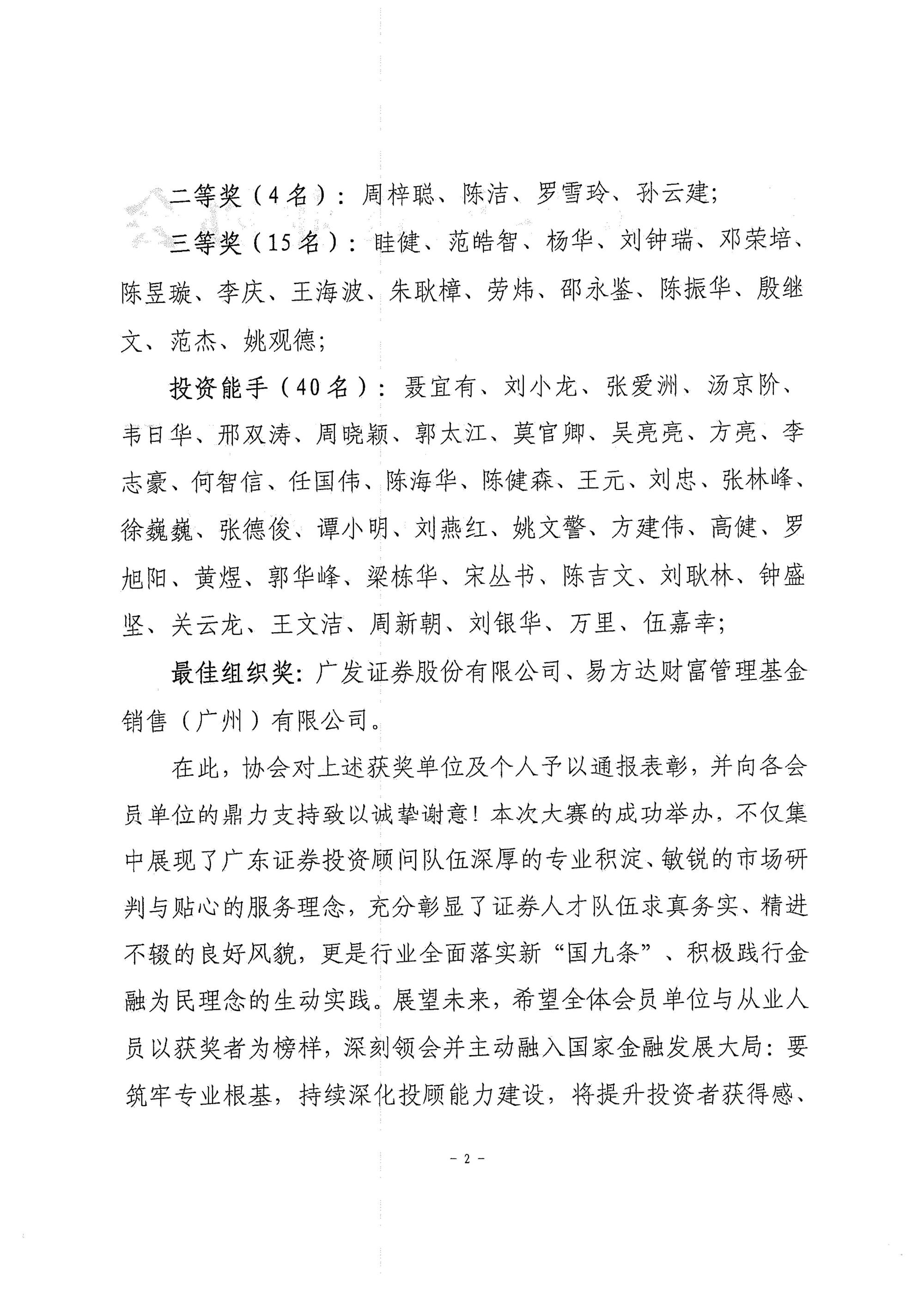 关于表彰广东证券行业第二届投资顾问职业技能大赛获奖人员和单位的通报