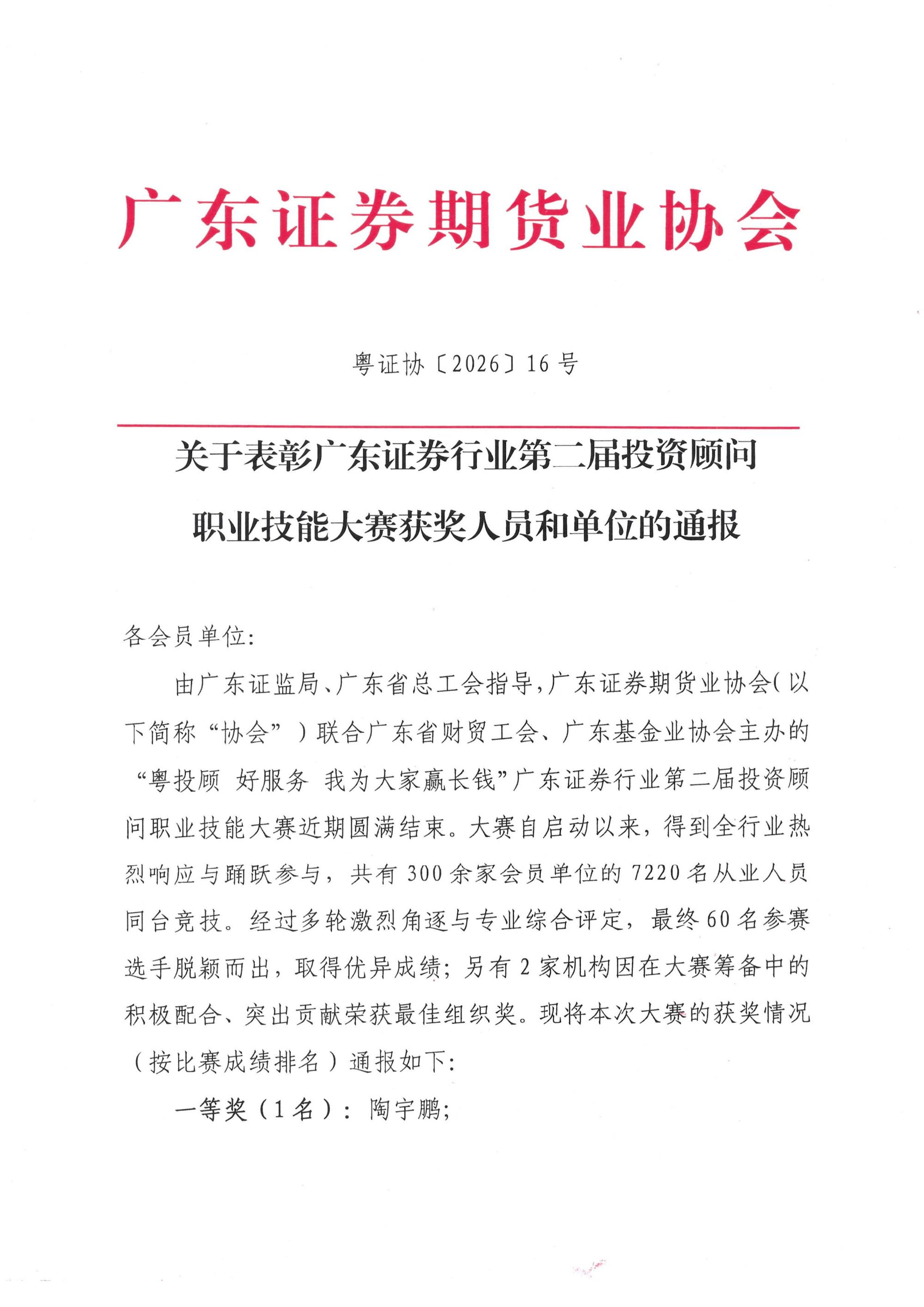 粤证协2026-16关于表彰广东证券行业第二届投资顾问职业技能大赛获奖人员和单位的通报.pdf